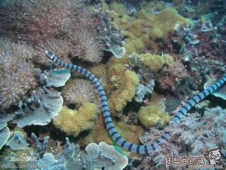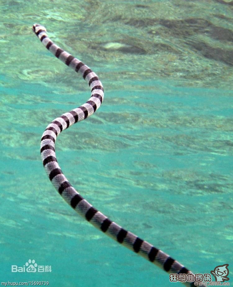 体长约两公尺。栖息于海洋,食物以鱼类为主,卵生,有剧毒.毒牙细小,一次分泌的毒液量少,也捕食鳗鱼等。它的右肺几乎占据了身体的右半部分。它可以潜入10丈深的水里,它那象桨一样的尾巴有利于迅速游动到达目的地。