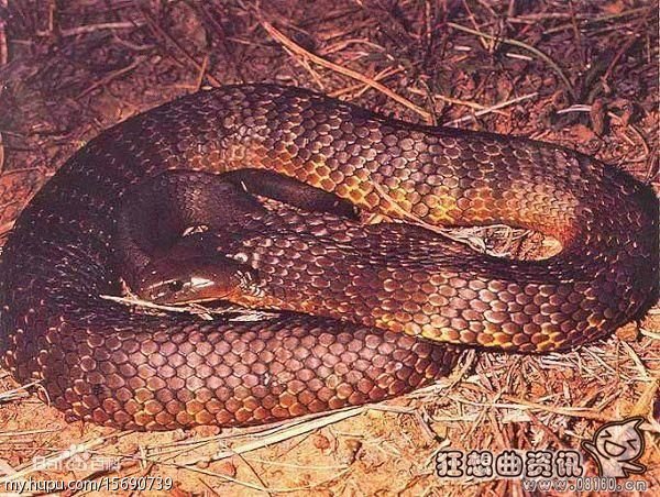 它是致命的一种毒蛇,个头很大,身体强壮,并能分泌致命毒液,每咬一口释出的毒液已足够杀死100个成年人, 分布于澳洲北部、新几内亚 ,体长约两公尺。栖息于树林、林地,以小哺乳动物为食,卵生。 :分布于澳洲北部、新几内亚。栖息于树林、林地,以小哺乳动物为食,卵生,体长约两公尺。分布于沙漠及干枯河床等地。神经毒素,心*河蟹*素,一次排出的毒液足够杀死50万只老鼠,几乎具有核武器的杀伤力,与贝尔彻海蛇齐名堪称世上最毒的蛇,毒性还要比 眼镜王蛇强100倍。但是,因为此蛇分布于人迹罕至的荒漠,性格比较温和看见人会主动避让,到目前为止还没有人死于这种蛇咬伤的纪录。