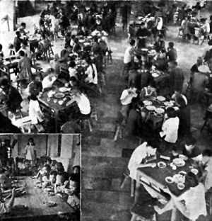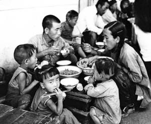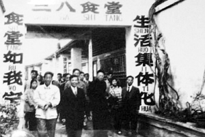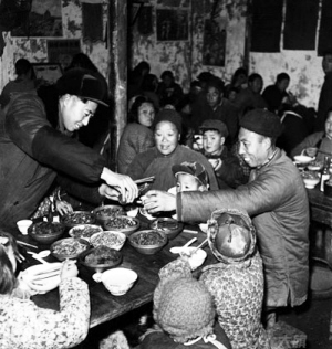 因为大跃进和人民公社化运动的关系,1958年下半年起,自古以来一直是各家各户分散做饭的中国农民,忽然都搞进了公共食堂里头。家家都兴高采烈地把小锅砸了交给大队,大队造了个大锅供全队男女老少吃喝,人人吃饱为止但不许带走,就像现在的自助餐,男女老少吃得很高兴,热气腾腾地每次都把肚子吃得鼓鼓的回家。