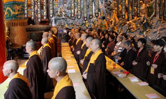 关于布萨的仪轨,一般律寺都是依照《四分律》的作法。但是,禅宗则简化了一些仪轨。下面,我们介绍一下禅宗寺院的诵戒仪轨: