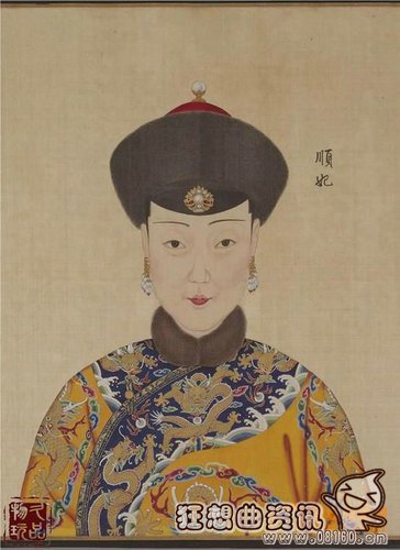 顺妃,即被降为顺贵人的钮祜禄氏,总督爱必达女。乾隆十四年十一月二十五日生,乾隆三十一年六月二十六日进宫,初封常贵人,年18岁,比乾隆小38岁。乾隆三十三年封顺嫔,乾隆四十一年六月晋顺妃,画卷上的顺妃像应为本年绘制。乾隆五十三年正月二十九日,顺妃降为贵人。当年十月二十八日入葬,卒年41岁。