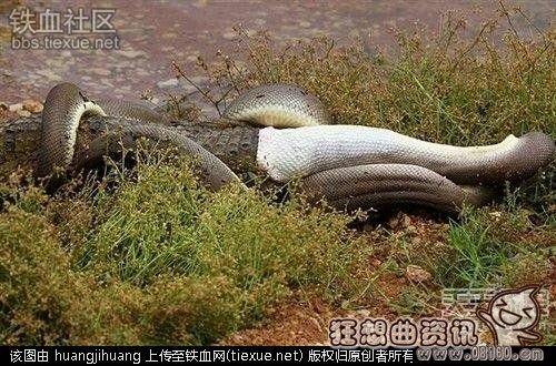所以这里就要讲明两者是谁先发起攻击的了,如果是鳄鱼首先对巨蟒发起进攻,估计两者平手,但鳄鱼胜算大些。如果是巨蟒首先发起进攻,那么,鳄鱼必定成为巨蟒的腹中食