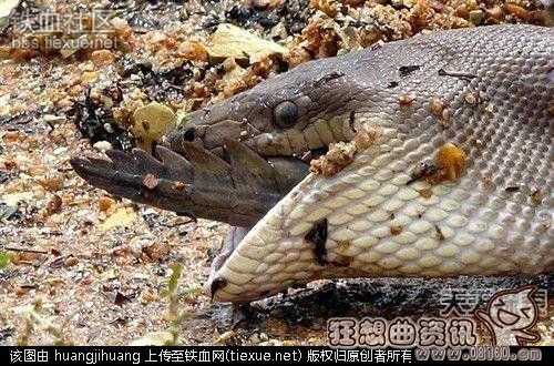 澳大利亚昆士兰大学蛇类专家布莱恩-弗利教授介绍说,“它们(蟒蛇)可以吞下一条鳄鱼,这肯定没问题。但是,鳄鱼拥有自我防卫能力,因此捕食鳄鱼比捕食老鼠要危险得多。此外,还有其他危险。”据这场蛇鳄大战的目击者介绍,蟒蛇前后共花了5个小时才艰难吞下整条鳄鱼。在此过程中,蟒蛇极易受到澳洲野狗等动物的攻击。