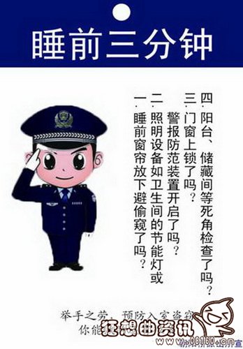 根据我们的调查,犯罪分子经常是“乘虚而入”,选择容易下手、难被人发现的地方入屋盗窃作案。如果在盗窃过程中被人发现,他们就有可能铤而走险,施行抢劫、伤人、强奸乃至杀人。尤其是对于单身女子来说是非常危险的。一天之中有两段时间是他们作案的“黄金时段”:凌晨三四点钟和白天上班时间。现在城市里有许多小偷,他们有时在公交车上偷别人的钱包,有时在商场里偷别人的货物,有时他们更是连自己的朋友也偷。所以学会如何去防范小偷也成为我们生活须知道的常识。今天我就告诉大家“如何防范小偷入室行窃”。