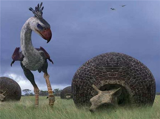 恐鹤是一种不会飞的、巨大的肉食性鸟类,中新世时期在今天的南美洲大陆分布。在2000万年前,南美大陆还没有大型哺乳类食肉动物。在这片大陆上,恐鹤处在食物链的最顶端。这种不会飞的鸟类恐鹤站立时高2.5米,体重可达130公斤,头部和马一样大。其原始的翼就像是一对有爪的手臂可以捕捉猎物,并以巨大的鸟喙来杀死猎物。