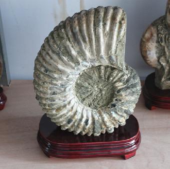 海螺化石图片及价格 ![]() ![]() ![]() ![]() ![]() ![]() “海螺化石”学名“菊石”,是一种海洋类古生物化石,在古生物中被划为头足类软体动物,是从约4亿年前的泥盆纪早期的鹦鹉螺目进化而来的,在其后的3亿7千万年间,在全世界的海洋里大量繁衍.但到了白垩时期,它们的种类却急剧下降,再由于地球地质的变迁,使其遗体残骸沉积在灰岩或页岩中,且身体的标本得以完整保存,年代久远而使之变成化石.它们和恐龙一样,在白垩纪晚期从地球上绝种. 菊石属于软体动物门,头足纲,是4亿年前的泥盆纪从角石分化出来的头足动物,极盛时期是中生代,所以中生代有“菊石时代”之称.随着中生代的结束,菊石在地球上全部消失. 菊石的构造与角石基本相似,但在结构形式方面,比角石进步得多.主要表现在壳内分隔各个房间的“隔墙”上,角石壳内小房间的“隔墙”比较简单,平直或稍微凹曲;而菊石壳内的小房间的“隔墙”,却折曲得很利害,有的更是非常复杂.有的壳口可具单口盖或双口盖.隔壁边缘褶皱,与外壳接触处所形成的缝合线,类型复杂,对于研究菊石的演化及分类非常重要.缝合线可分为内外两部分,自腹部经两侧面到两旋环接合线(脐线)的部分称为外缝合线;自脐线经过背部到另一面脐线的部分称为内缝合线.