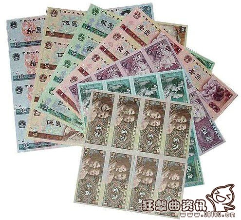 详细的说来第一套、第二套钱币为苏联印制、第三套、第四套、第五套为我国自主印制。连体钞,即多张连在一起未裁切的纸币,是供收藏、鉴赏的纸币真品。随着收藏人士的增多而有中国人民银行批准、授权,中国长城硬币投资有限公司和康银阁硬币投资有限公司限量装帧、发行仅为收藏人士发行。纪念钞是为重大题材和钱币技术上有重大突破而发行的,到目前为止我国只有三种纪念钞分别为:建国钞、奥运钞、龙钞。
