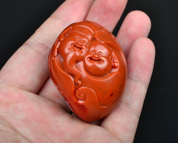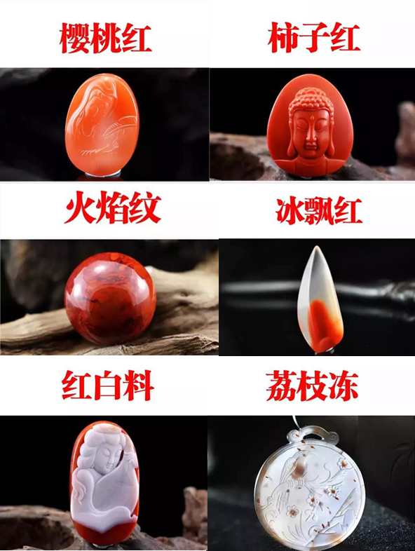 锦红,柿子红,玫瑰红,柿子黄,俏色,真的不好说谁好谁不好,每个色系的最顶级,都非常美,非常难得。不能够单纯按照颜色来排队。 2、烧红玛瑙有明显的火劫纹。