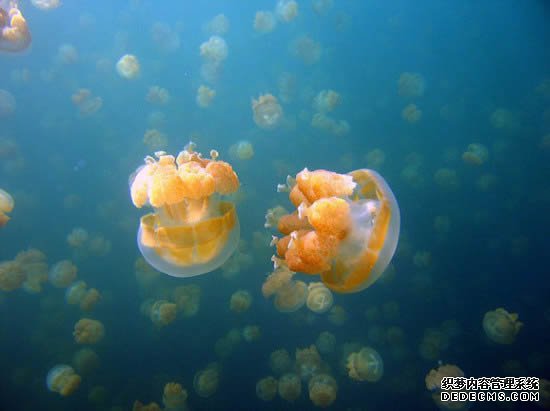 在帕劳群岛,各种绚丽好玩的活动,不比海洋少一分色彩。例如垂钓,一个不留神,钓上来的就可能是重达200公斤的蓝色马林鱼、旗鱼、金枪鱼。为了让更多人热爱垂钓这项活动,帕劳垂钓协会每年四五月间举行一次钓鱼比赛,胜出者能获得丰厚的现金奖。还可以带着齐全的打鱼工具出海,但是不要去捉蝠鲼,它是海洋里的“除草机”,能吃掉海藻保护珊瑚。这种体形庞大的鱼,张开“翅膀”像一只巨大的蝙蝠,又像轰炸机,身后拖着一条又细又长的尾巴,不就是电影《海底总动员》里小丑鱼尼莫的老师吗?因为样子怪怪的,发起火来能把船顶翻,有人叫它魔鬼鱼,其实它很温驯,以甲壳动物或成群的小鱼小虾为食,吃饱了就围着礁石游来游去,让小鱼“医生”清理一下腮,高兴了成双成对“飞”出水面滑翔。只要不惹怒它,它会安静甚至友好地让潜水者接近,摸摸抱抱。 在帕劳的海里,可以抱抱的生灵多了。你敢想象抱住一大朵水母么?就是那种伞状,透明的,在海水里漂啊漂,极其美丽然而极其危险的浮游动物。帕劳有个水母湖,拥有了世界上独一无二的无毒水母。在数万年前,水母湖曾是海的一部分,由于地壳运动,周围的海床升高,逐渐将它与外海隔绝,形成了一个内陆咸水湖。湖中大多数海洋生物都随着养分的消耗而消亡,只剩下了靠少量微生物就可以生存的水母。由于天敌消失,水母渐渐丢弃了防身武器——身体内的毒素。成千上万朵水母在你身边漂浮,散发出淡淡的橘色光芒,尽可以抱着它们拍照、嬉戏,但不要伤害它们。