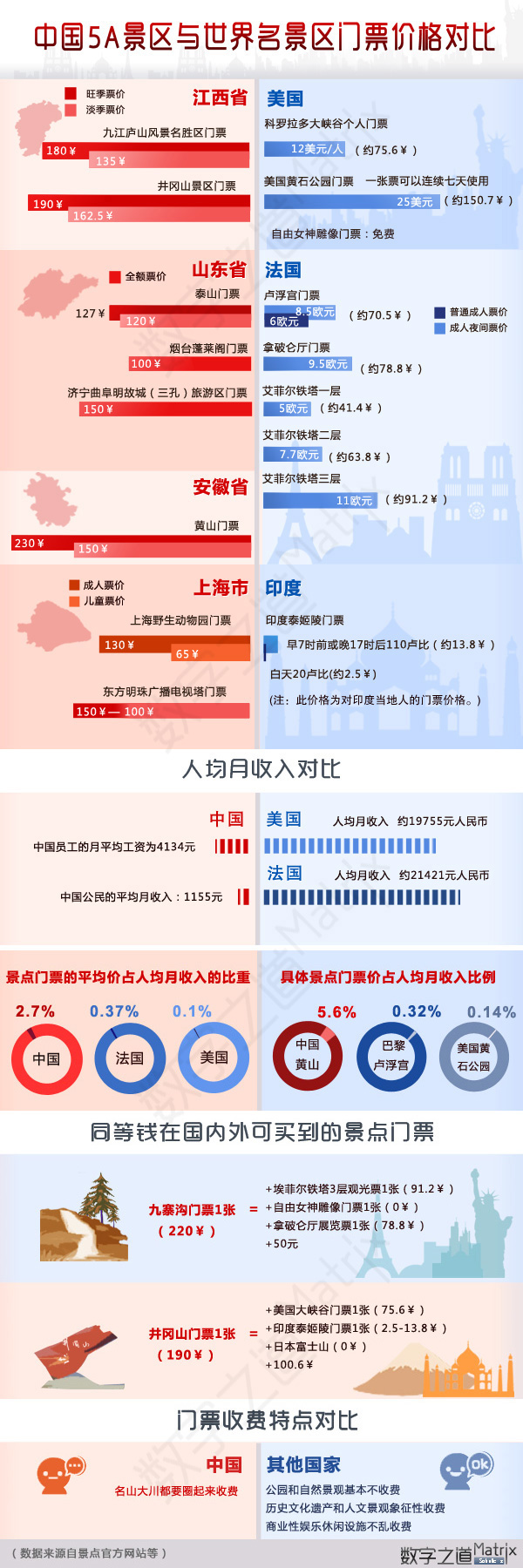 中国5A景区与世界著名景点票价对比: ![]()