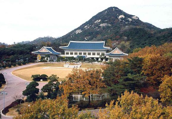 青瓦台是韩国总统官邸,位于首尔市钟路区世宗路一号。 青瓦台原是高丽王朝的离宫,1426年朝鲜王朝建都汉城(首尔)后,把它做为景福宫后园,修建了隆武堂、庆农斋和练武场等一些建筑物,并开了一块国王的亲耕地。