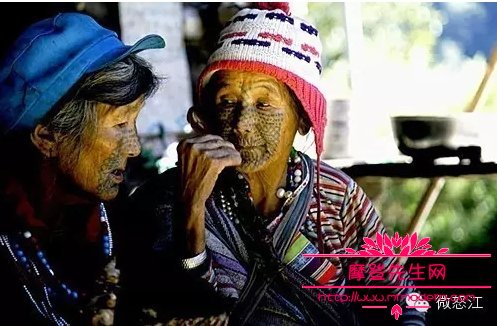 据资料介绍,在中国,有一个“纹面”的民族,这就是独龙族。独龙族居住在独龙江河谷。这是一个与世隔绝的少数民族,女孩子长到十二三岁,就需要纹面。先用竹签蘸上锅底的烟灰,在眉心、鼻梁、脸颊和嘴的四周描好纹形,然后请人一手持竹钏,一手拿拍针棒沿纹路打剌。每剌一针,即将血水擦去,马上敷上锅烟灰汗,过三五天,创口脱闸,皮肉上就呈现出青蓝色的斑痕,成了永远也擦洗不掉的面纹。