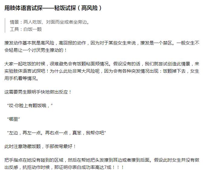 当一个男人跟你说么么哒是跟你表白吗, 当一个男人单独跟你说么么哒,不用怀疑,他就是在跟你表白,么么哒是什么意思,想来是全国人民都知道了,这都普及网络用语好几年了,在不可能出现不懂的人了,所以么么哒就是爱你的意思,就是表白的意思,不是这个意思就不可能说这句话。 但是也有一些特殊的情况,比如说两个人十分相熟了,而男人又比较随性,是那种对谁都能开的了玩笑的人,还有一些年纪比较轻的男生,他们在说么么哒的时候,纯碎就是一种好玩的态度,这个时候的么么哒,多半没有什么意思。 作为一个网络用语,会用到的人也是那些经常上网的年轻人,年纪稍微大点的,也很愿意学习和使用么么哒,相比我爱你这样露骨的表达,么么哒更隐形,受到了很多欢迎,么么哒就是一种比较容易说出口的表白。 男人表白前试探你的表现有哪些 任何事情都不是一下子就发生的,男人在表白之前都会有一个试探的过程,人也不会一下就跟一个完全不喜欢自己的人表白,总是要有点好感,成功率高才敢开始的,那么女生需要明白一些男人表白前试探你的表现,以免错过良缘呐。 首先男人会对你有言语上面的恭维,肢体上的接近,平时接触的时候,眼神都会温柔很多,这样都是要心思较为细腻的女生才会发现,然后男人在你面前会比较得体,会找一些话题跟你一起讨论,多数会询问一些感情的事情。实际行动上面会经常和你相遇,请你吃饭等等。然后直到某一天时机成熟,男人就会表白了,或者根本没有表白,直接牵手了呢。 |