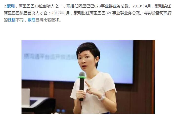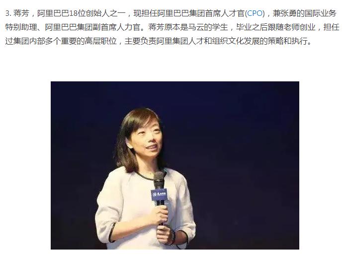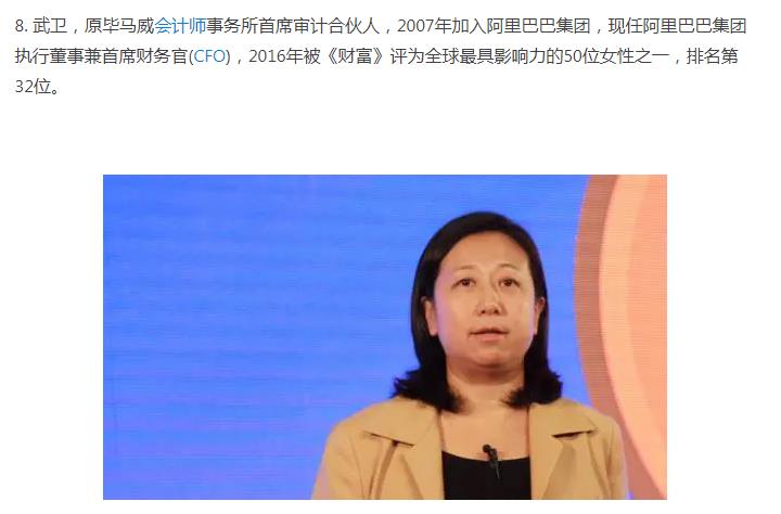 下面这位美女小二叫Phoebe,在阿里巴巴工作超过8年,平时健身是她最喜欢的业余活动。 ![]() 前几天还有一个争议比较大的阿里巴巴的美女叫王晗,她自称是离职高管,后来被打脸,但是实力炒作了一把,目前离职在外创业,下面是她跟马云的合影。 ![]() 马云曾经说过,阿里巴巴成功的关键是女人,而阿里巴巴公司内部也有高达49%的员工比例是女性,里面的美女不计其数,但是做到高管的,下面这9位绝对是女性中的佼佼者! 第一当属彭蕾!马云背后的女人! ![]() 2、戴珊 ![]() 3、蒋芳 ![]() 4、彭翼捷 ![]() 5、董文红 ![]() 6、吴敏芝 ![]() 7。张宇 ![]() 8、武卫 ![]() 9、俞思瑛 ![]() |