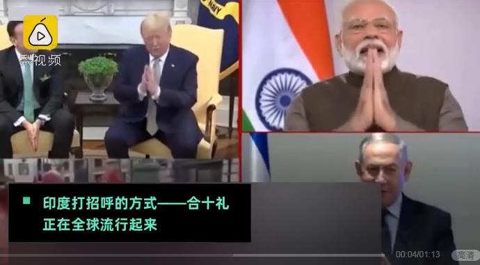 ![]() 而印度总理莫迪,也借此机会机会来宣传印度的合十礼,展示民族自豪感 ![]() 合十礼起源于古印度,也叫合掌礼,主要动作就是两手合并起来放于胸前,十个手指头相互并拢,以便表示对人的尊敬和祝福,主要的动作要领如下: ![]()