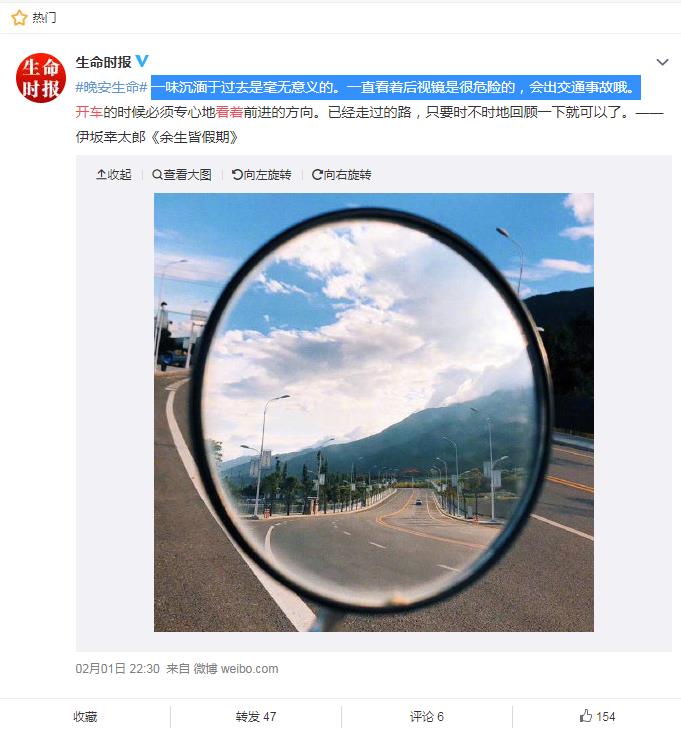 所以,我们“开车”的时候,还是要向前看,后视镜是给我们反思和总结经验教训的。 ![]() |