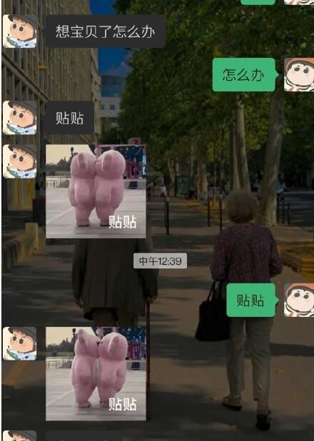 在中文语境中“贴贴”就是字面意思“贴在一起”“想亲近一下”,想与你有亲亲抱抱这种亲昵的动作,也可以在安慰他人时,或者想得到安慰时使用。