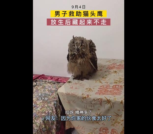 在农村很多地区,猫头鹰被认为是不祥之物,它们的叫声有点像“笑”,再加上它们晚上活动,让人感觉很瘆人、很神秘,在这样的背景加持下,长期以来很少有人主动去碰猫头鹰,慢慢的猫头鹰也就不怎么害怕人类了。此外,随着这些年国家队野生动物保护力度的加大,很多鸟儿们都不怎么怕人了,它们好像知道,人类不会伤害它们。比如最近某东北网友救助了一只受伤的猫头鹰,待其养好之后竟然赖着不走了。。