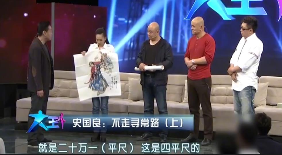 史国良老师是国家一级画家,他1956年出生,是活着的最著名的人物画坛写实派画家之一,尤其擅长画新疆民族风情的人物。在湖北卫视《大王》这个节目上,史国良老师来到现场鉴定他自己的画,因为在民间史国良老师的画已经被炒作到很高的价格了,交易量很频繁,据史国良老师说他鉴定自己的画发现,其中三分之二是假的,同时在这个节目上我们也知道,史国良老师的画一平尺的价格是20万,现场的主持人听到后都惊呆了,史国良老师那是在画画,分明是在画钱!