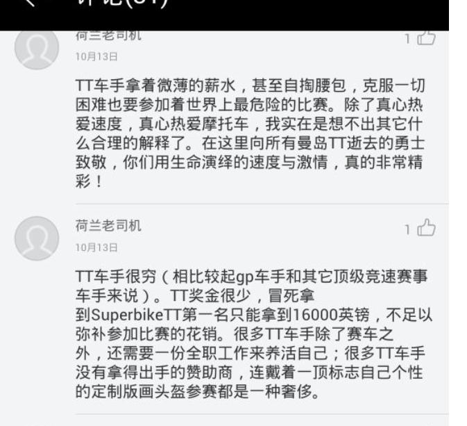 曼岛是在英格兰和爱尔兰之间的一个小岛,这样的岛屿一般都给人浪漫和探险的印象,曼岛有着自己独特的环境,这里是环岛机车耐久赛比赛的地点,每年都有很多赛车手在这里进行赛车比赛,挥洒自己的热血,获得自己的成就,然而一个不留神就命丧于此,车毁人亡了,所以曼岛TT也是一项公认的危险的比赛,那么曼岛TT这么危险为什么不禁止,曼岛TT的意义是什么? 曼岛TT这么危险为什么不禁止, 曼岛TT这么危险然而依然很多人踊跃参加,并且毫无禁止的迹象,这是因为它非常刺激,非常比拼勇气,非常热血,是男性荷尔蒙飙升的运动项目地。这里充满了危险,然而也充满了诱惑。车手们对于这样刺激的事情那是放不下手,离不开心的,不征服一次终生遗憾。 更何况在这里比赛是参赛规定,每一个车手都为能参加世界超级机车锦标赛而感到值得,并未获得冠军为荣耀,所以每一个车手都不会放弃这样的机会,即便是危险,但也趋之如骛。而且这个危险还携带者刺激,激情,以及十足的不屈和勇敢,挑战自我,超越自然。 曼岛TT的意义是什么? 曼岛TT的意义在于勇士般的荣誉,参加过这样的比赛,似乎自己的人生都变得有意义了,很多车手甚至很穷,而曼岛TT的奖金也并不不菲。曼岛TT全程60公里,200多个弯道,没有任何的安全防护,车速快而地形险要,至今曼岛TT已经车毁人亡251例,这样的前例在先,并没有对后来者进行劝退,反而更是激发了更多人的热血,非要挑战一次不可,这里面要说有什么意义,唯有热爱可以解答了。可能曼岛TT的意义就是一种向死而生,寻求生命的意义。