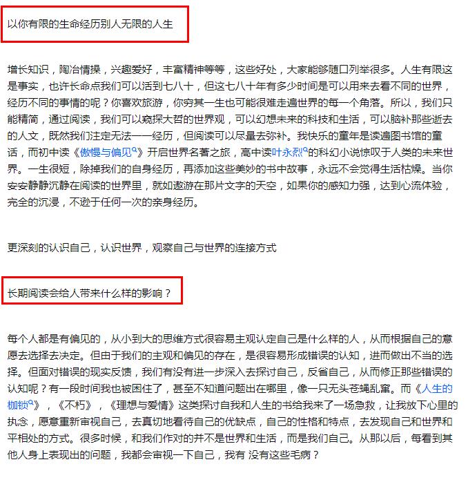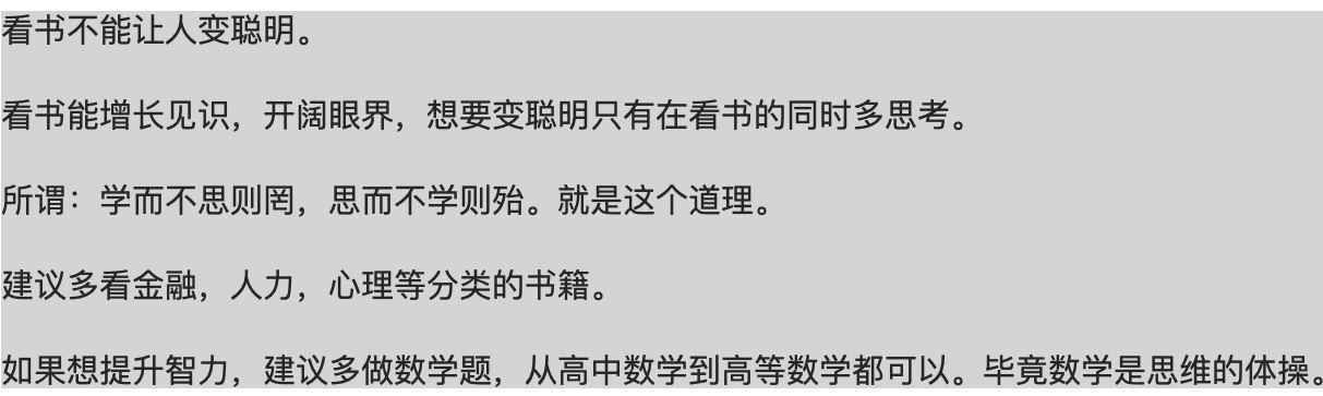 现实生活中,人们把一些死读书的人统称为“书呆子”,毕竟在大众的认知中,在进入社会这所大学后,智商高的人是不如情商高的人的,因此有些学霸经常会被说“读书读傻了”,但同时人们又提倡多读书,似乎书籍是万能的,那么多读书真的能够变聪明吗? 其实进入职场后,大多数人都是没时间读书的,他们宁愿花费时间去打游戏、玩手机,也不愿意抽出十分钟来看一本书,但是很多知名企业家却说,他们日常都会抽出一些时间来读书,这大概是精英和普通人的差别吧,其实读书也是很好的一种习惯,尤其是坚持长期阅读的人,一般都是很厉害的,那么长期阅读的人到底有多厉害? 通常来说读书就是一个学习的过程,而长期阅读能够让人养成一个良好的习惯,还能增加个人的知识储备量,人们常说“书到用时方恨少”,因此多阅读会让个人的阅历增加,比如说和朋友或者客户聊天时,能够言之有物,而且读书多还能提高思考能力,改变思维方式,从而得到更多的解决问题的办法,最重要的是,多阅读能够让人的精神上获得愉悦的感觉,精神富有的人更容易取得成功。 不过人们在谈到读书的时候,很容易进入到一个误区,就是觉得所有的书籍都是有益的,其实书籍也是有好有坏的,同样读书也不是学习的最好方式,最重要的是,读书并不能让人变得聪明,只是会让人变得善于思考和开阔眼界,毕竟人的智商基本上都是来自遗传,而因为多读书而变聪明的情况是非常少的。