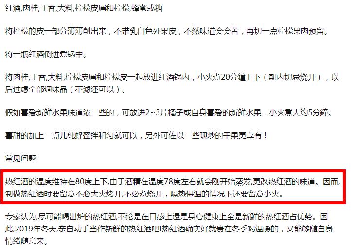 在温暖又浪漫的圣诞节到来的时候,朋友圈有很多热红酒的身影,这时小编不禁就要产生很多的疑问,什么是热红酒呢?热红酒,顾名思义,就是把红酒加热。一般情况下,为了维持酒液里的酚类物质不会过快散去,稍微冰一冰或者冷藏一下,让红酒维持在16~18度的适饮温度,这都是可以理解的,但要把红酒加热,这就有点太不能理解了。 其实热红酒也是一种酒文化,它最早起源于公元2世纪的罗马人,由于冬季严寒,所以罗马人经常会在冬天喝点热饮来抵御冬天的严寒,但由于因存储不当,储存的红酒口感就会受到很大的影响,但人们发现红葡萄酒在添加香料并加热以后,风味得到了较大地改善,索性人们就把红酒加热后再饮用,这样既能御寒,又能增加口感,而且他们认为,把葡萄酒和香料混在一起加热后饮用,不仅能够改善健康,还能起到预防疾病的作用。随着罗马人征服了欧洲的大部分国家,他们在欧洲大陆的版图不断扩大,热红酒的这一喝法随之就扩散到了整个欧洲。整个中世纪,热红酒愈来愈受大家的欢迎,现如今热红酒在德国依然很流行,在寒冷的冬天,能够喝一杯热红酒,真是无比的温暖人心。 近来非常流行的热红酒是以红酒、水果、香辛料为主原料煮制而成的饮品,一般红酒的度数比较低,在13度左右,而煮热之后,由于酒精的挥发作用,红酒中的酒精会挥发掉大部分,但这并不能使酒精完全挥发,一般会剩下几度,所以热红酒的度数虽然会降低,但仍会有酒精残留,这时的热红酒实际上更类似于一种含有酒精的饮品,所以大家可以喝热红酒,但是切记不要贪杯哦。