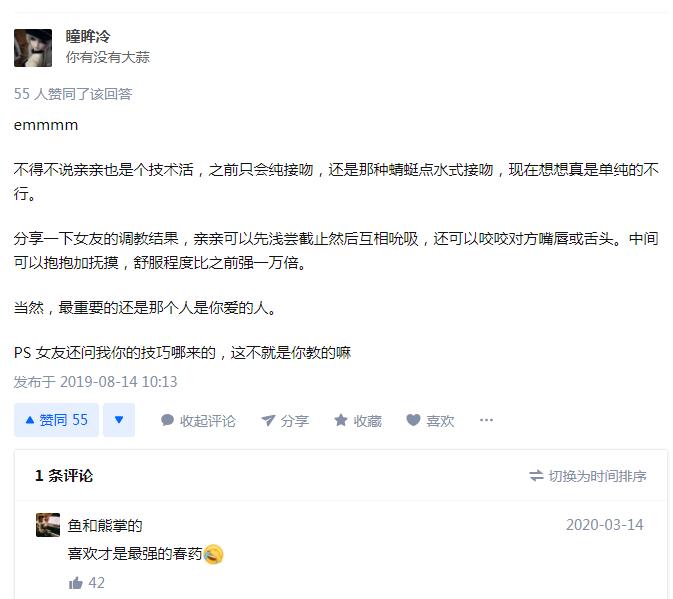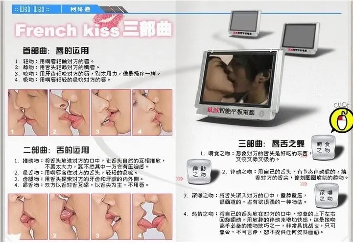 ![]() 接吻伸舌头和不伸舌头最大的区别当然是彼此之间的感受,伸舌头的那种水乳交融会让你真正大脑放空,闭上眼睛完全的投入,不少女孩在被这样接吻后,会出现站不住、全身瘫软无力的现象,欲漂欲仙就是形容这种感觉;而男生们则会出现呼吸急促、心跳加速的“猴急”现象。 不伸舌头的接吻,实际是伸舌头接吻的第一步,一开始接吻的时候先是互相亲吻嘴唇,然后吸允对方的嘴唇,慢慢的再开始伸舌头,体验那种彼此互相占有的感觉。小编觉得,舌吻才是一次完整的接吻,不伸舌头的那种点到为止,更像是一种礼节性的互相表达爱意。 有网友形容,伸舌头和不伸舌头的舒服程度上的差别可能是“一万倍”。 ![]() 那么,如何进行一次高质量的舌吻呢??下面图片上给了详细的步骤,跟着学,慢慢练,主要是讲究感觉。 ![]() |