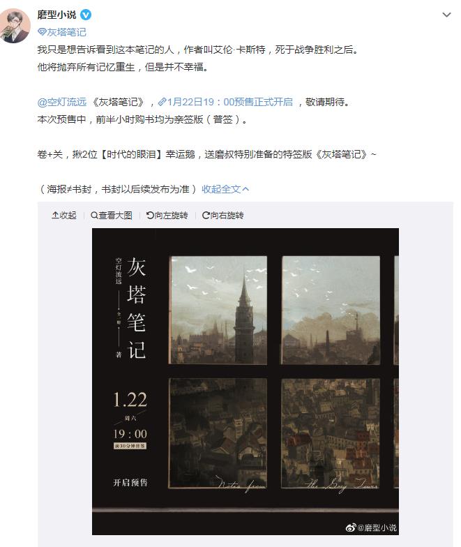 空灯流远作品《灰塔笔记》确认出版。主要内容是:“我”是情报机构破译军情密码的“工具”,也是ZZ斗争中的“棋子”;与此同时,“我”发现了有关早已身亡的母亲的线索,为了确认母亲的消息,“我”不得不隐瞒所有人,暗中与对方联系,但是这也让我一步步入深渊。 微博网友@朱一龙爱妻王小羊说:“安德蒙显然是典型的结果导向型人格+成就动机极强,为达目的不择手段,所以他为了抓捕“雏鹰”,不惜以艾伦为诱饵,以及在最后为了实现在一起的目标,给艾伦洗去记忆,都是非常符合人物设定和行为逻辑的做法。我觉得比那些小虐一下就开始疯狂甜宠到OOC的文强多啦!而有这样的人格特质+人生经历,他会被满怀赤子之心又天真浪漫,且能在密码研究中与他思想交锋的艾伦吸引也是再正常不过的。”