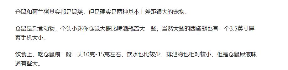 养不了猫猫狗狗这样需要溜达的宠物,可以试试天竺鼠等小型动物,在家里划一点地方给它就可以了,虽然不能给很多感情回报,但是可爱萌是真的超级萌化人。只是市场上这些小动物还是比较多的,种类多,名称更多,像是我们熟知的天竺鼠,荷兰猪,仓鼠等等都是很不错的小鼠类宠物,只是天竺鼠和荷兰猪的区别,天竺鼠和仓鼠哪个好养?