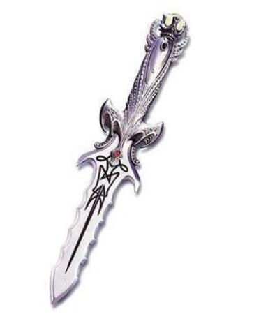 火陨:十七世纪欧洲一个农民用天上掉落的陨石打造的,很奇怪的是这把刀的不管在多么低温的环境下都能保持20℃的恒温,而且用这把刀割开的伤口会流血不止,农民的妻孩先后被割伤后流血不止而死,后将它送给僧侣,而僧侣在旅行中虚脱而死,所以传说这是一把能吸血的刀!