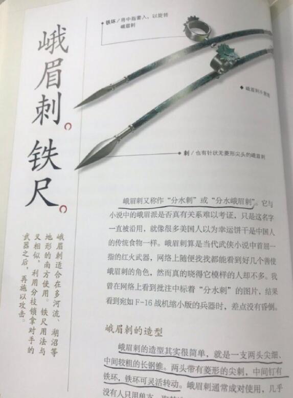 峨眉刺:又叫峨眉分水刺,这是峨眉山的一位僧人发明的,死于叫做峨眉刺,造型非常独特,使用起来的招式灵活多变,在与其他刀的对决中经常会拿出意想不到的方式取胜,非常厉害,这把刀的强度取决于使用者的熟练度。
