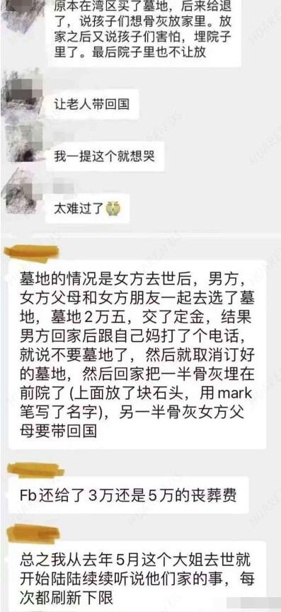 以二人的等级资历,在大厂里面的年薪可以达到40-50美元左右,而根据目前的信息,这位渣男,只愿意给岳父岳母5万美元左右,还要扣除网友捐款的1.8万美元,也就是只拿出了3.2万。当然,男子自称自己拿出5.4万美元。就算他最终答应给岳父母买商务舱,老两口加起来也不过4万美元。而这个渣男迟迟不愿意给前妻买的墓地,声称前妻希望海葬,真实原因是嫌墓地贵,在湾区墓地的价格大概也就是3000到2万美元不等,在国内的价格大概也就是4万美元左右。