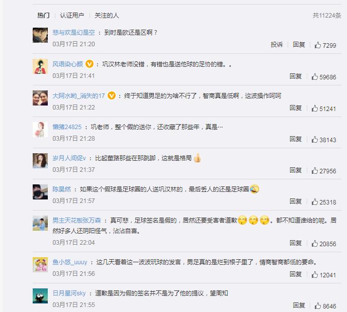 而巩汉林在得知是假签名之后,也迅速道歉:“看到区楚良的微博深感不安,当时签名没有得到认证,郑重地向区楚良先生和各位朋友致歉”。 对此,网友纷纷给巩汉林点赞:“真可悲,足球签名是假的,居然还要受害者道歉[黑线][黑线]。都不知道谁给的呢。居然好多人还阴阳怪气,沾沾自喜。”、“如果这个假球是足球圈的人送巩汉林的,最后丢人的还是足球圈”。 ![]() 很多球迷对区楚良可能非常不熟悉,他1968年8月26日出生,曾被评选为广东足球70年十大杰出男球员之一,目前是中国国家足球队守门员教练。