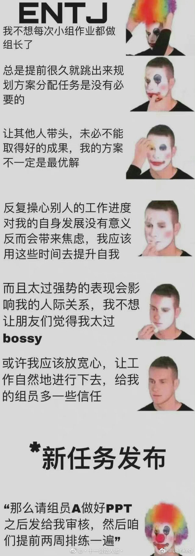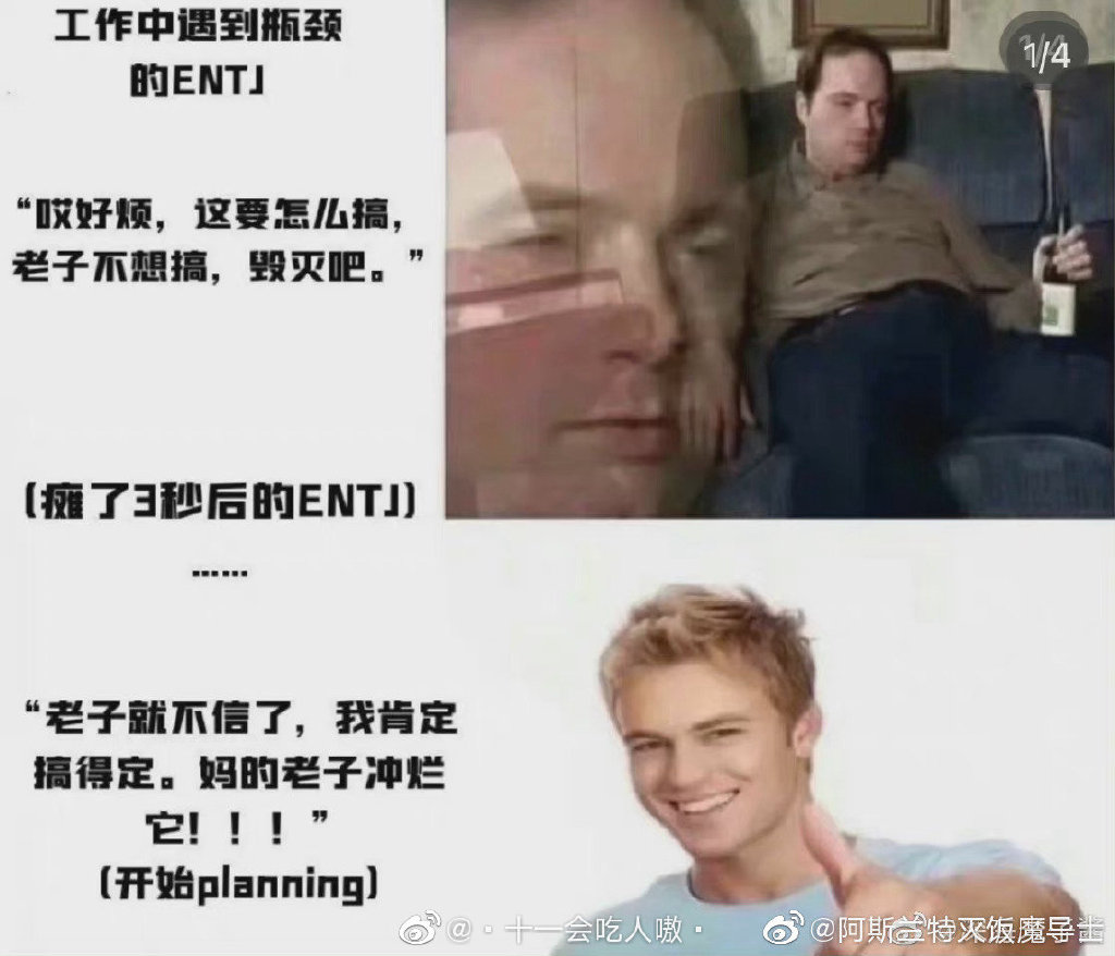 ![]() ENTJ这种人格,相对来说是比较稳重的类型,从恋爱的角度来看,ENTJ是最深情又最绝情的类型没有之一,当他深爱你时可以为你去死,不爱你时你在他面前死掉也面无表情的类型。说再见,就彼此都不会去挽留对方,注定不会走到最后。ENTJ最适合的是ENTJ和ESTJ。 ![]() 工作方面,ENTJ型人格比较适合两大类的工作分别是: