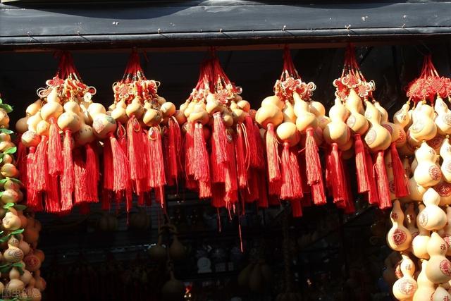 在农村,老人们常说葫芦是缩小版的天地,像大家熟知的伏羲、女娲,就是葫芦的化身。由于端午节是一个有毒的月份,人们挂葫芦来驱除不良势力。农村流传着一个美丽的故事。 相传古时候某村不知何故得罪了天帝,天帝准备在五月端午派人下毒。这件事被八仙的吕洞宾知道了。他假扮成卖油的,把这个消息告诉了村民,还发了一个破解的方法,用的是一个什么都有的葫芦。所以后来有了“端午挂个葫芦,越来越富”的农业谚语。