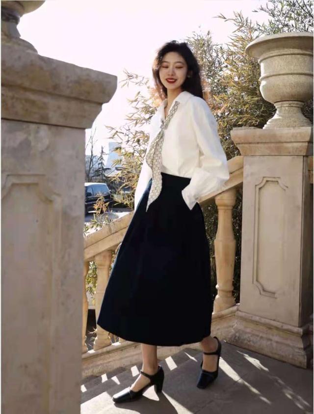 是美式复古牛仔外套,很优秀的单品,一看就很喜欢。里面是简单的白色衬衫,下身搭配黑色直筒裤和棕色西式长靴,很有韩剧女主角的感觉。整体气质超好。 Look6菱形毛衣外套搭配白衬衫,蓝色牛仔高腰裙,黑色帆布鞋 温柔文艺范:超实用的韩版春装穿搭分享,温柔减龄,甜美舒适的莫兰迪色,穿上优雅少女。这件外套是复古的法国蓝色菱形毛衣外套,里面是基本款的白衬衫。衬衫扎进底裙更有活力,下半身是牛仔蓝高腰裙和黑色帆布鞋。 Look7黑色毛毛外套白色衬衫米色格子裤米色爸爸鞋