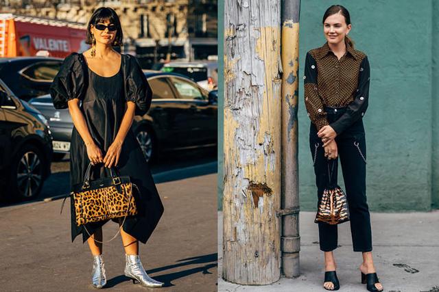 如果不想尝试服装上的豹纹元素,其实可以尝试服装上的豹纹元素。豹纹包是今年最抢眼的单品。搭配黑色连衣裙或者黑色高腰裤,搭配豹纹包包,在黑暗中会瞬间亮起来,回头率百分百没问题。