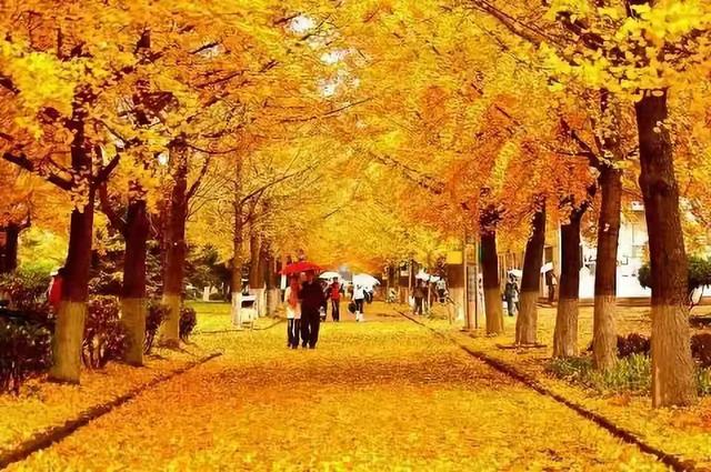 不得不说,银杏的最佳观赏期是11月至12月,此时银杏大道成为“黄金大道”,黄色的银杏叶飘满枝头和地面。