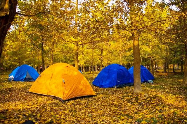 在我到这里的第一天,我想体验一次野营旅行。很美的露营地,睡在银杏林!