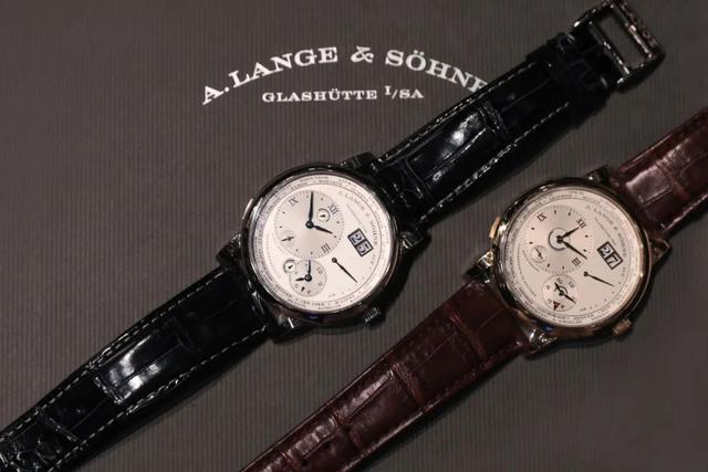 (右边新兰格1兰格1世界时手表) 新款搭载全新L141.1机芯,表盘经过优化设计。在继承经典世界时间功能的同时,突出了独创的原地创新设计和第二时区的环形昼夜显示。刻字的变化使效果更加明显。如果你仔细看,你会发现在小小的数字表盘上,5点钟位置有一个带箭头的小窗口。红色的表示城市采用夏令时制,可谓独居匠心。