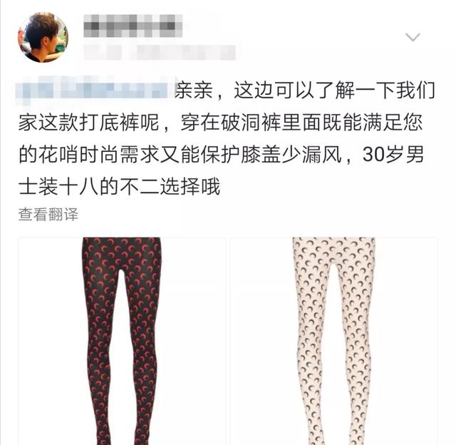 甚至还有商家的公益广告,直接说打底裤符合男性需求,但是这种花型略显骚。