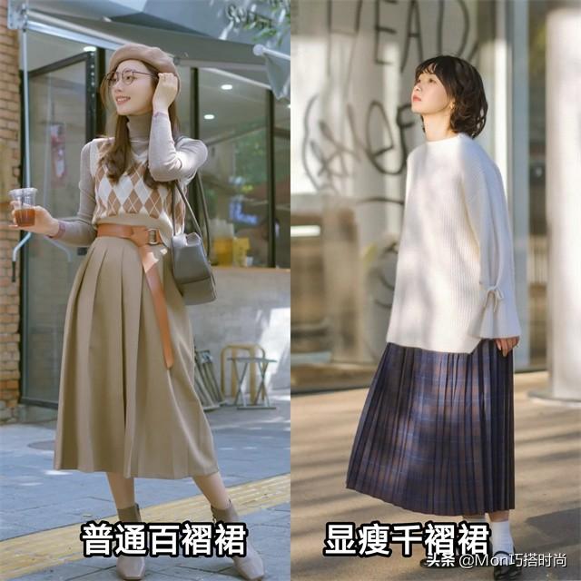 今天要给姐妹们介绍的百褶裙,从外观上看和普通百褶裙很像,但在细节上却大不相同。 普通百褶裙褶皱较松,而百褶裙褶皱更细腻,挺拔感更强,穿起来垂感更强。虽然看起来很简单,但是给人一种非常精致优雅的感觉。 【第二条】为“毛衣百褶裙”选款的秘诀 (1)选择毛衣