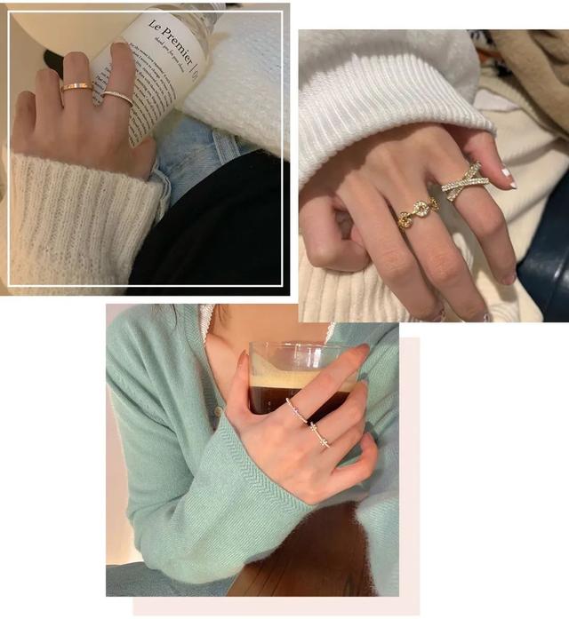 姐妹们,不要以为戒指这个小玩意虽然看起来没什么用,但其实起着很重要的作用。它不仅可以修饰我们手的形状,还可以在整套衣服上起到画龙点睛的作用。