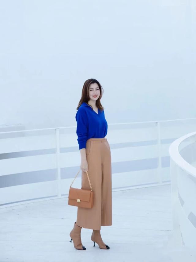 如果你想让自己的风格更加明亮华丽,我们可以把漂亮的克莱恩蓝穿在你的上身。用这种颜色的毛衣或衬衫搭配一些低调的裤子,呈现出更优雅明亮的效果。即使是职场女性,也要选择克莱恩蓝衬衫搭配宽松的九分直筒裤。卡其色低调温柔,知性优雅的整体魅力展露无遗。