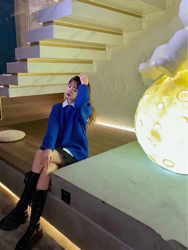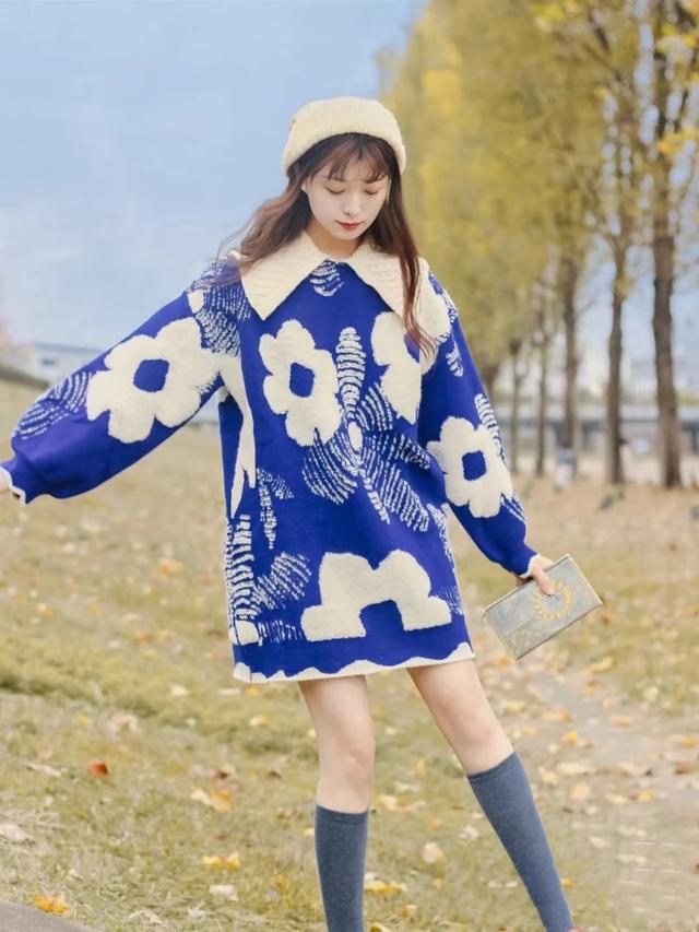 如果你厌倦了纯色的克莱恩蓝,我们还可以搭配印花点缀。像这样的直筒毛衣裙,以克莱恩蓝为底色,点缀米白色卡通印花,更添甜美气息。穿深色很减龄。这么长的毛衣裙搭配简单的丝袜也很俏皮好看。 字母印花点缀的克莱恩蓝针织开衫,春季穿搭率极高。你可以把它当外套穿,也可以把扣子绑起来玩一玩就消失了。这款V领针织开衫搭配起来也比较休闲。合同色系列的鞋子充满了青春活力,尤其是腿长。