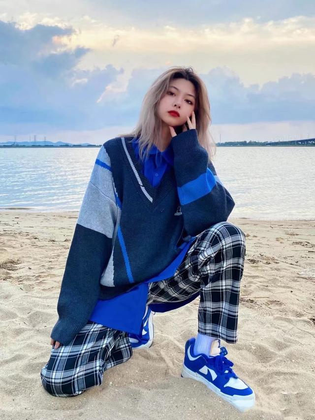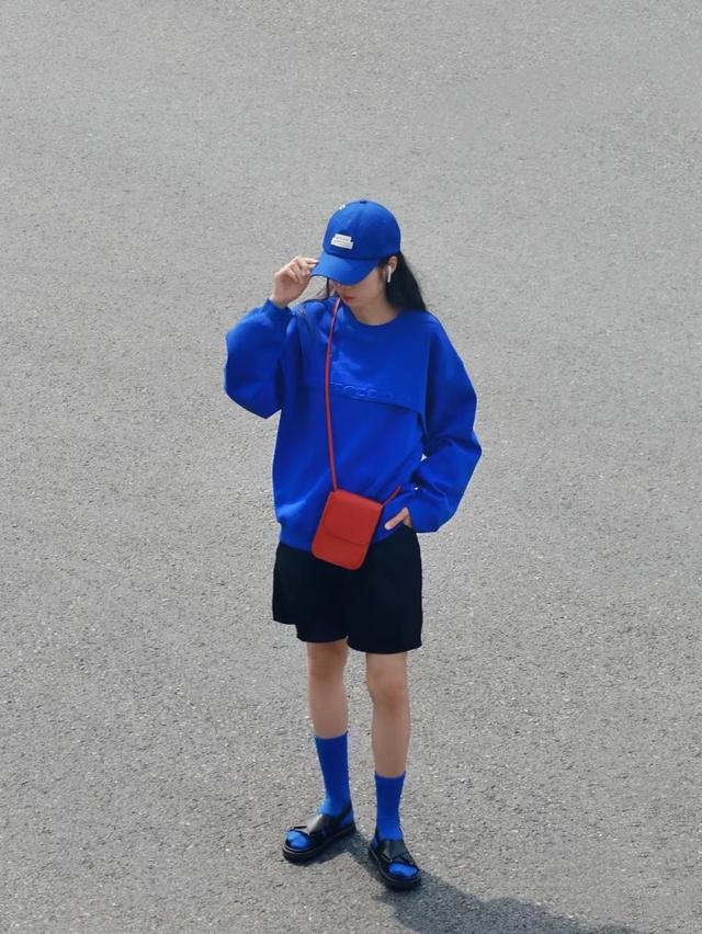 帅气活泼的风格,克莱恩蓝也能轻松搞定。宽松的蓝色平角毛衣,搭配休闲风格的黑色短裤,更显帅气之美。尤其是同色系的袜子和棒球帽的搭配,更增添了帅气活泼的美感。鞋和短裤的配色也有一定程度的呼应。看起来穿起来有些个性,但是配色很谨慎。
