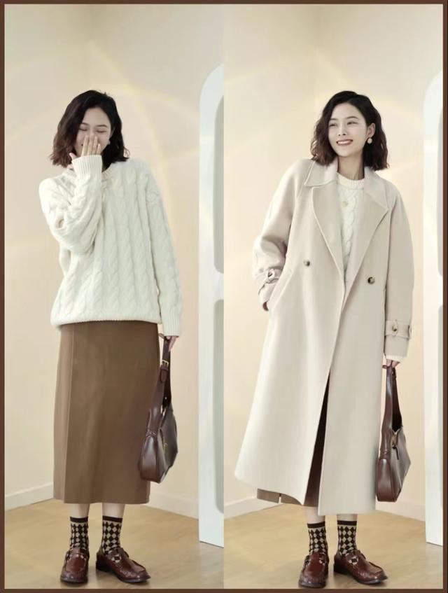 其实穿大衣最美的季节是深秋,南方的深秋还是挺适合大衣配裙子露腿,或者裤子露脚踝的。这种厚件的大衣,能露出来搭配当然是最好看的,里面的那件越轻,整体感觉就越轻。