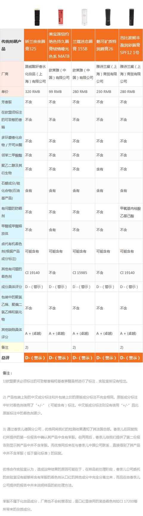 香奈儿口红中的苯胺含量偏高。 2007年《化妆品卫生规范》对编号为CI 17200的着色剂成分规定口红中苯胺含量不得超过25mg/kg。按照这个限量,这款口红的苯胺含量明显偏高。 关于苯胺偏高的问题,Youke.com第一时间将我们的检测结果告知了香奈儿法国总部。该公司提供的第一份报告证实其产品含有苯胺。但两周后,该公司向我们提供了第二份报告,显示其产品不含苯胺。 为了证实测试结果,尤克。com再次联系中国进口商——香奈儿(中国)贸易有限公司。对方表示,根据复检结果,其产品“苯胺含量低于定量标准”。此外,对方还表示,化妆品行业使用的一些着色剂本身含有极少量的苯胺,CI 17200(食品红12)、CI 15985(食品黄3)都是法律允许的着色剂,可能含有苯胺;对方强调“其产品中的苯胺含量在微量水平是可以忍受的。” 据与Youke.com的合作实验室介绍,香奈儿前后两次复检结果的差异可能是由于在样品预处理阶段,香奈儿委托的实验室未能将含苯胺的着色剂与口红的其他成分完全分离,香奈儿提供的报告也未说明样品预处理方法。 苯胺可能损害血液循环系统和脾脏。 苯胺又称氨基苯,是最简单的芳香胺之一。美国毒物与疾病登记署称,苯胺广泛用于工业,如聚氨酯泡沫、油漆、合成染料、抗氧化剂和除草剂。它可以通过饮食、呼吸或皮肤接触进入人体,产生毒性。 苯胺会对人体健康有影响吗?在暴露量和暴露时间充足的情况下,血液循环系统和脾脏可能受到损伤。一些权威研究机构也认为这种成分具有致癌性和基因毒性。 美国环保署公布的苯胺研究报告显示,苯胺会破坏血液中运输氧气的血红蛋白,使其形成高铁血红蛋白,从而失去携氧能力,损害人体血液循环系统。具体危害程度取决于暴露量和暴露持续时间。 同时,苯胺对脾脏也有不良影响。这些都是苯胺对人体长期接触的主要影响。此外,一些科学研究表明,苯胺会损害肝脏和肾脏细胞。 美国环境保护署将苯胺确定为一种可能的人类致癌物,并将其归类为“B2”。他们认为,不同喂养方式下的动物实验证明,苯胺有诱发脾脏和血液肿瘤的风险。此外,苯胺的遗传毒性也是EPA将苯胺归为B2的主要原因之一。 美宝莲口红检出甲醛但未超标。 欧莱雅集团的“美宝莲丝绒哑光彩惊艳持久口红MAT8”是此次评测的10款口红中最便宜的产品。这款低价口红,走的是平民路线,被检测出含有致癌和致敏的甲醛,所以被评为D级-(警告)。 和苯胺一样,甲醛也有广泛的工业用途,如食品防腐剂、家具、消毒剂、药品、化妆品等。美国毒物与疾病登记署称,甲醛会刺激皮肤、眼睛、鼻子和喉咙的黏膜,高剂量接触甲醛可能会导致一些癌症。患有哮喘等呼吸系统疾病的人对甲醛更敏感。 因为该产品的配料表中没有可能含有或释放甲醛的物质,所以我们无法确定甲醛的来源。需要注意的是,这款美宝莲口红的甲醛含量并没有超过中国国家标准。 关于口红中的甲醛,江南大学化学与材料工程学院副教授曹光群表示,为了保证化妆品的使用寿命,一般会在化妆品中添加不同种类的防腐剂。口红中检出的甲醛可能来自一些释放甲醛的防腐剂,如重氮烷基脲,是化妆品中常见的释放甲醛的防腐剂。曹光群认为,化妆品中的甲醛含量只要符合相关限量,一般都是安全的。 儿童不应使用口红。 本次检测中,雅诗兰黛、纪梵希、娇兰、迪奥、芭比波朗五个品牌的产品被发现使用了色号为Cl 19140的着色剂(俗称柠檬黄)。如果该物质进入体内,会引起皮疹和瘙痒。 此外,送检的美克菲、香奈儿、迪奥、兰蔻四款产品,含有着色剂CI 15985(俗称日落黄)。欧盟从2010年开始,含有这种着色剂的食品必须明确标注:“可能影响儿童的活力和注意力”,意思是可能导致儿童注意力缺陷或多动症。 虽然口红不是食品,孩子也很少用口红,但优客建议厂家使用更安全的着色剂。同时也提醒爱美的妈妈们,尽量让宝宝远离你包里的“危险品”。 建议:不要用含矿物油的口红。 口红为什么要用石蜡?曹光群说,要想让口红涂抹均匀,产生蜡质、油性的亮泽效果,需要添加大量的固体和液体脂质。此外,口红中还会加入一些石蜡。 北京日用化学研究所所长徐亮撰文指出,由于唇部角质层和颗粒层较薄,对口红的安全性提出了更高的要求。但口红类产品,由于其特殊的涂抹部位,可能含有石蜡成分,慢慢被吸入口中。 虽然德国联邦风险评估研究所(BfR)在2015年5月发表的意见中表示,目前德国市场上的化妆品中矿物油(包括石蜡)的含量不会带来健康风险。欧洲食品科学委员会(SCF)的研究报告显示,低粘度的矿物油类物质(包括石蜡)会在肝脏和淋巴结中积聚。德国知名公益组织Stiftung Warentest与德国自然环境保护 协会(BUND)都建议消费者,不要使用含有矿物油类物质的口红。(综合自优恪网) |
