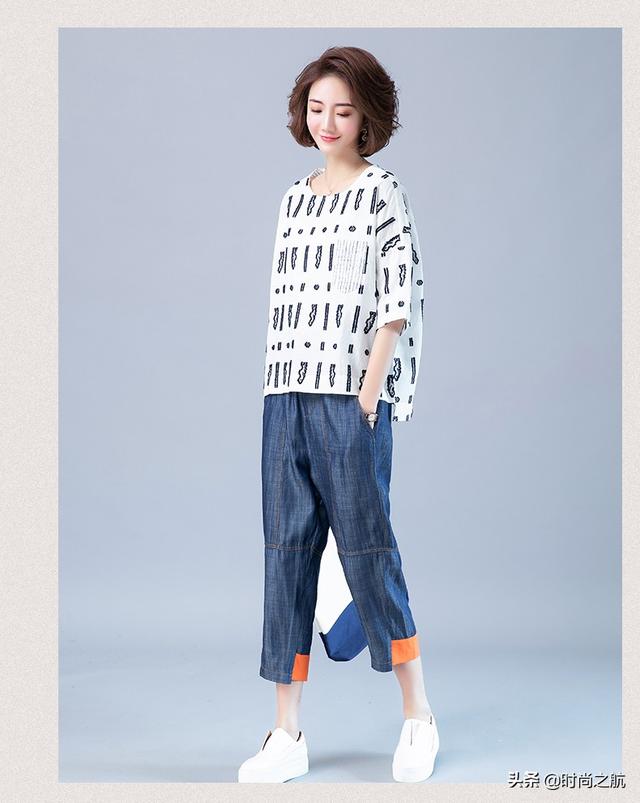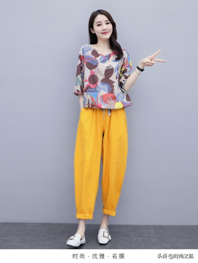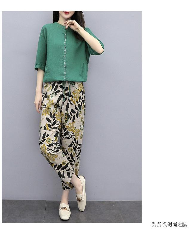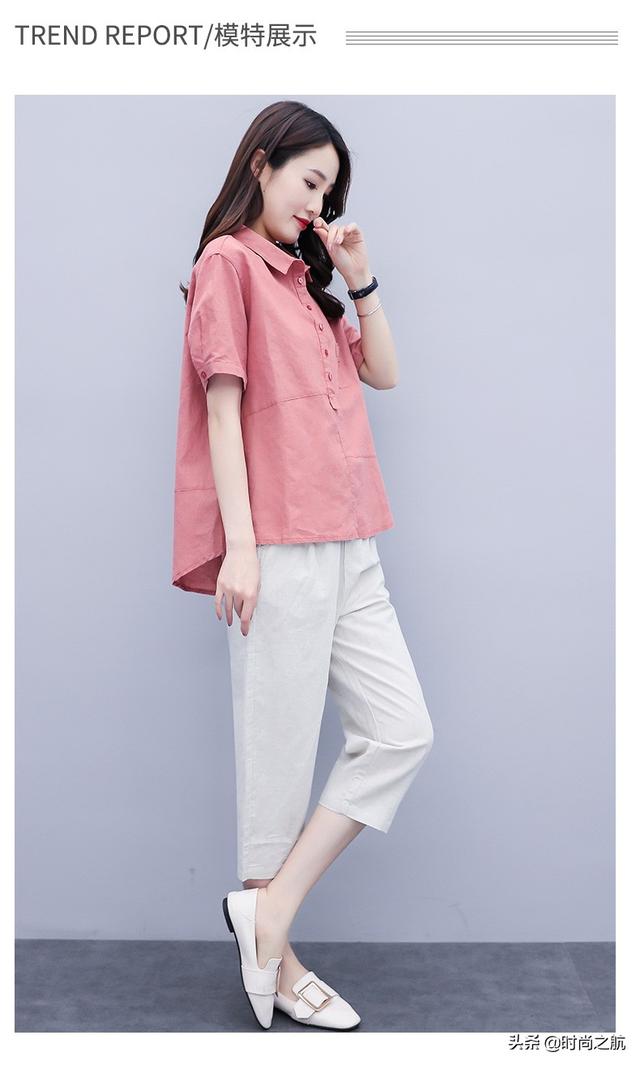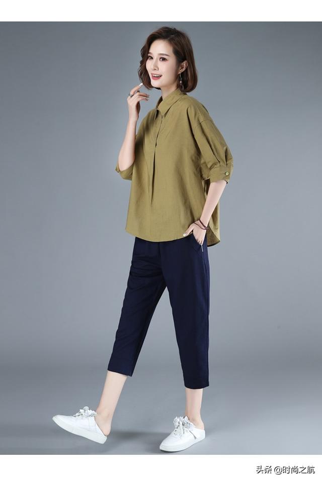 棉质七分袖衬衫搭配哈伦裤,简单素色,尽显自由生活!