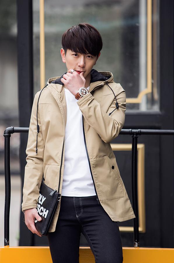 搭配技巧:浅色t恤,深色牛仔裤,英伦鞋,卡其布风衣 连帽风衣,休闲又有型,戴个帽子扮酷也是极好的。